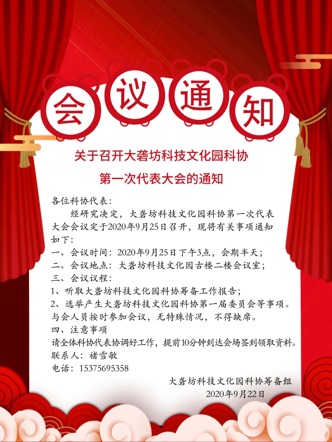 關于召開大礱坊科技文化園科協第一次代表大會的通知